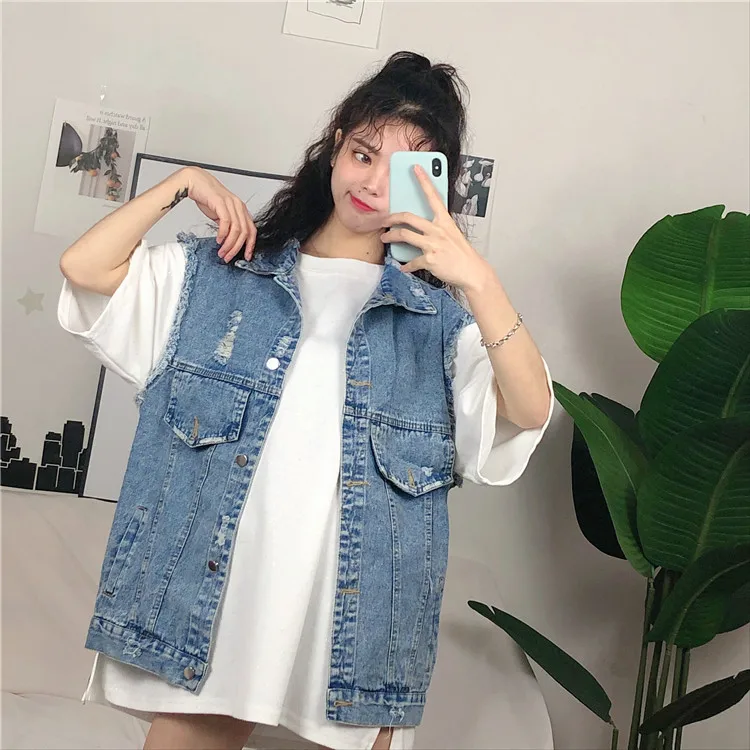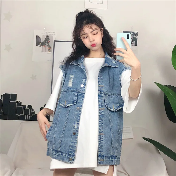 Hot Sale WOMEN'S Dress New Style Korean-style Students Loose-Fit Denim Vest Waistcoat Women's Mid-length Ver